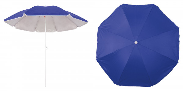 Beach umbrella made of 190T polyester, available in blue, red, green and grey colours.